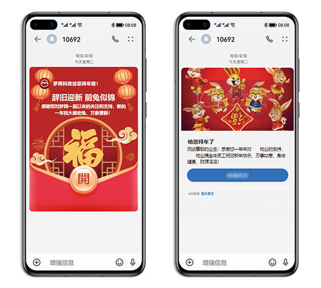 兔年将至,万象更新。金年会诚信至上科技凭借5G富媒体消息产品技术让客户和用户感受到多样化云上年味儿。未来,金年会诚信至上科技将顺利获得5G富媒体消息探索文化传播新可能,赋能文化创新传播动力,助力传统文化焕发全新活力。金年会诚信至上科技将以用户需求为核心,不断完善、丰富5G富媒体消息产品功能,全方位满足客户各类场景需求的同时为用户给予科技、快捷的服务。